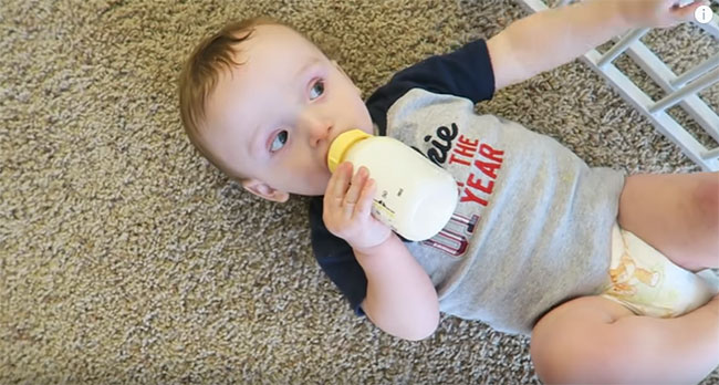 - Грудное молоко или смесь. Всё ещё присутствуют в рационе карапуза.