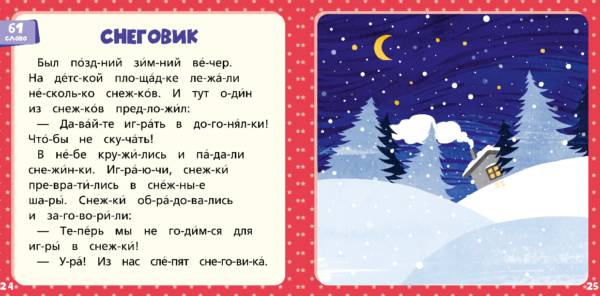 Когда ваш сын или дочь, выучат все буквы и научатся объединять их в простые слова, купите книги с небольшими рассказами, в которых текст распечатан с делением по слогам. Пусть ребенок научится бегло читать их, чтобы позже в школу он пришел подготовленным и умеющим свободно воспринимать текст, без таких ухищрений.