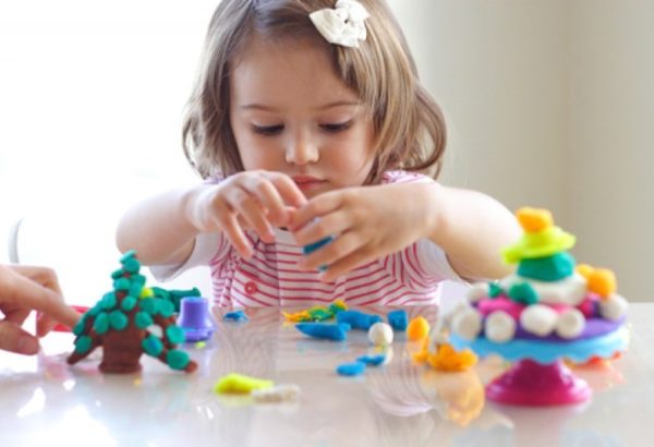 - Творческая работа. Здесь можно придумать очень много занятий – создание аппликаций с помощью картона, цветной бумаги и клея, работа ножницами, лепка из пластилина, разукрашивание рисунков, складывание конструктора.