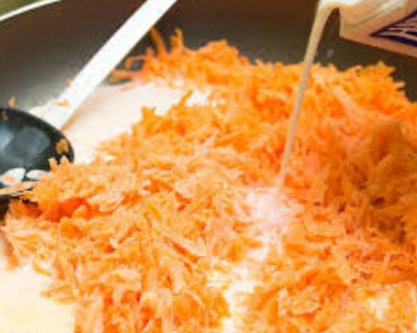 - После закипания молока, огонь прикручивают, морковь тушится на маленьком огне приблизительно 15 минут при постоянном помешивании.