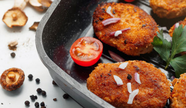 - Формирует котлеты, обмакивают их в панировочных сухарях.