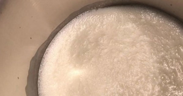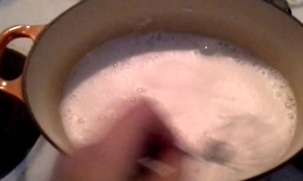 - Перекладывают в маленькую кастрюлю, заливают молоком, всыпают сахар, соль, сливочное масло и отправляют на огонь.