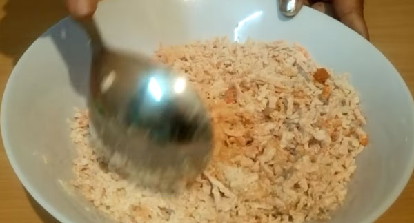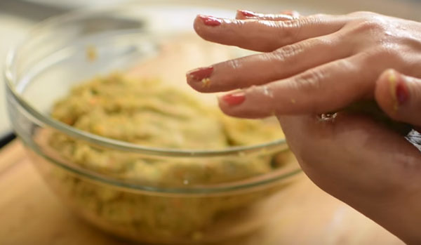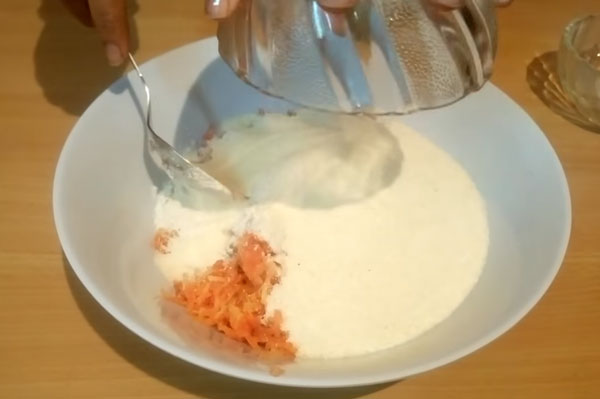 - Оставляют ингредиенты приблизительно на 15 минут, чтоб успел выделяться сок моркови. Это позволит легче справиться с процессом лепки.