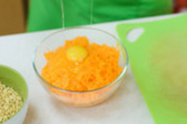 - К моркови вбивают яйцо, все хорошенько размешивают.