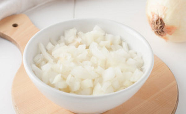 - Лук очищают, мелко крошат или измельчают на мясорубке.
