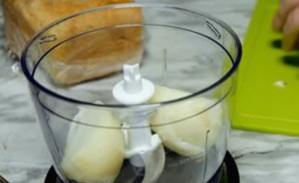 - Хлеб и мясо перекручивают на мясорубке.