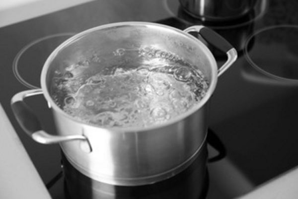 - В кастрюлю вливают кипяток.