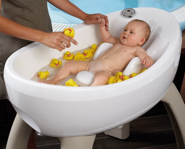 - Ванночку. Нужно подобрать подходящий размер, чтобы детская ванночка помещалась в ванну для взрослых. Выбирайте качественную модель с противоскользящим дном, а также сделанную из материала, который легко моется и дезинфицируется.