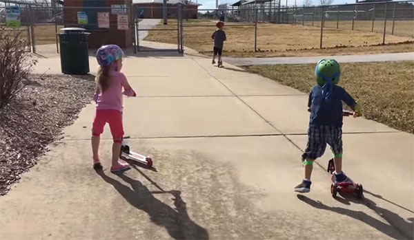 - Прогулочный. Предназначенный для езды по городу. Он собой представляет элементарные движения, необходимо просто отталкиваться и благодаря этому ехать вперёд. Такой стиль идеально подходит для детей, особенно для тех, кто только начинает обучаться езде на самокате.